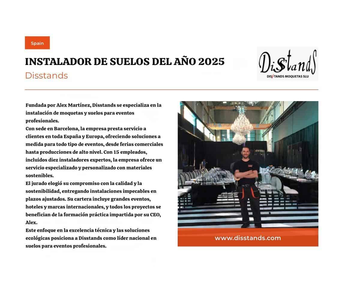 Disstands Moquetas S.L. ha recibido el reconocimiento como Flooring Installer of the Year (Instalador de Suelos del Año) en la edición 2025 de los Spain