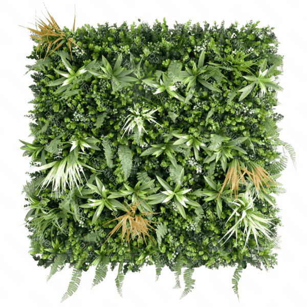El jardín vertical Alcazdis 100×100 es un panel artificial decorativo que simula vegetación natural con estilo elegante. Está diseñado para colocación en vertical, recreando paredes vegetales con total realismo. Este modelo cuenta con certificación de fuego clase E. Por tanto, ofrece seguridad adecuada para múltiples tipos de instalaciones.